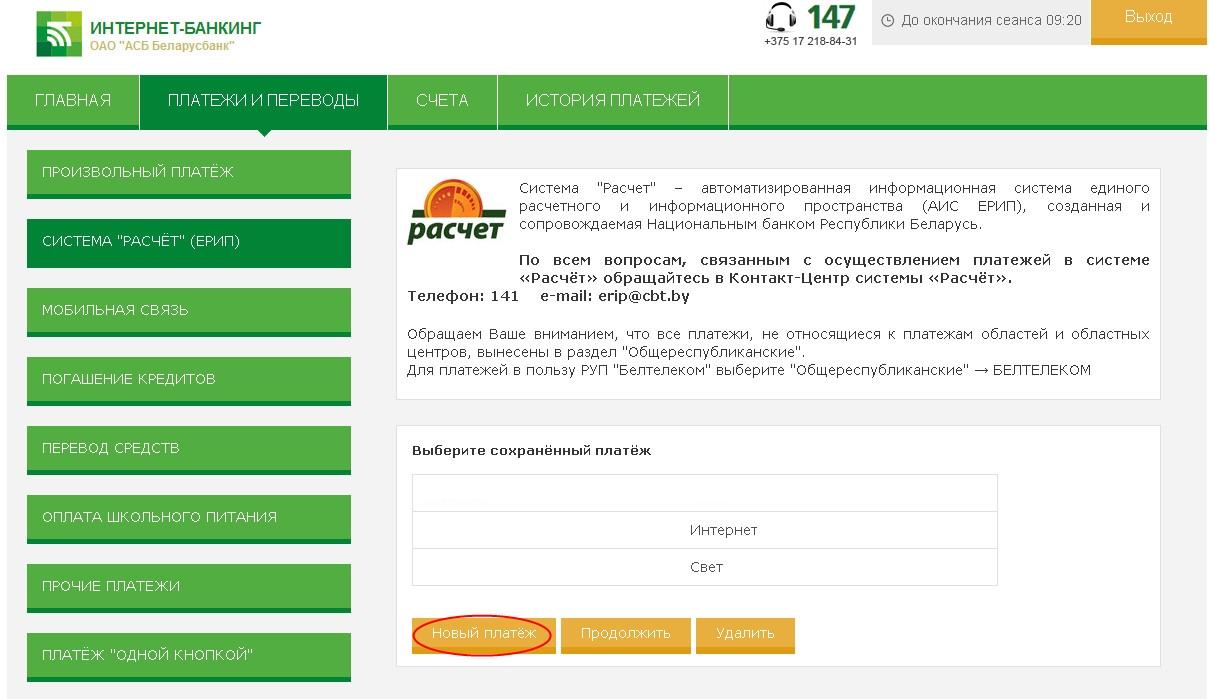 Подробный пример при использовании интернет-банкинга Беларусбанк